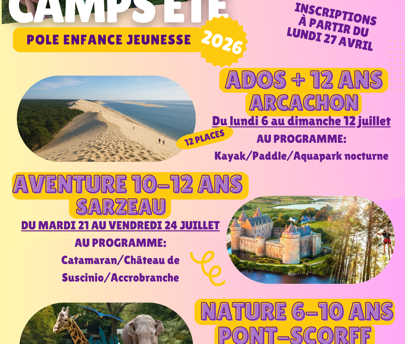 Nous avons le plaisir de vous présenter les camps proposés pour cet été ! Trois séjours sont organisés :