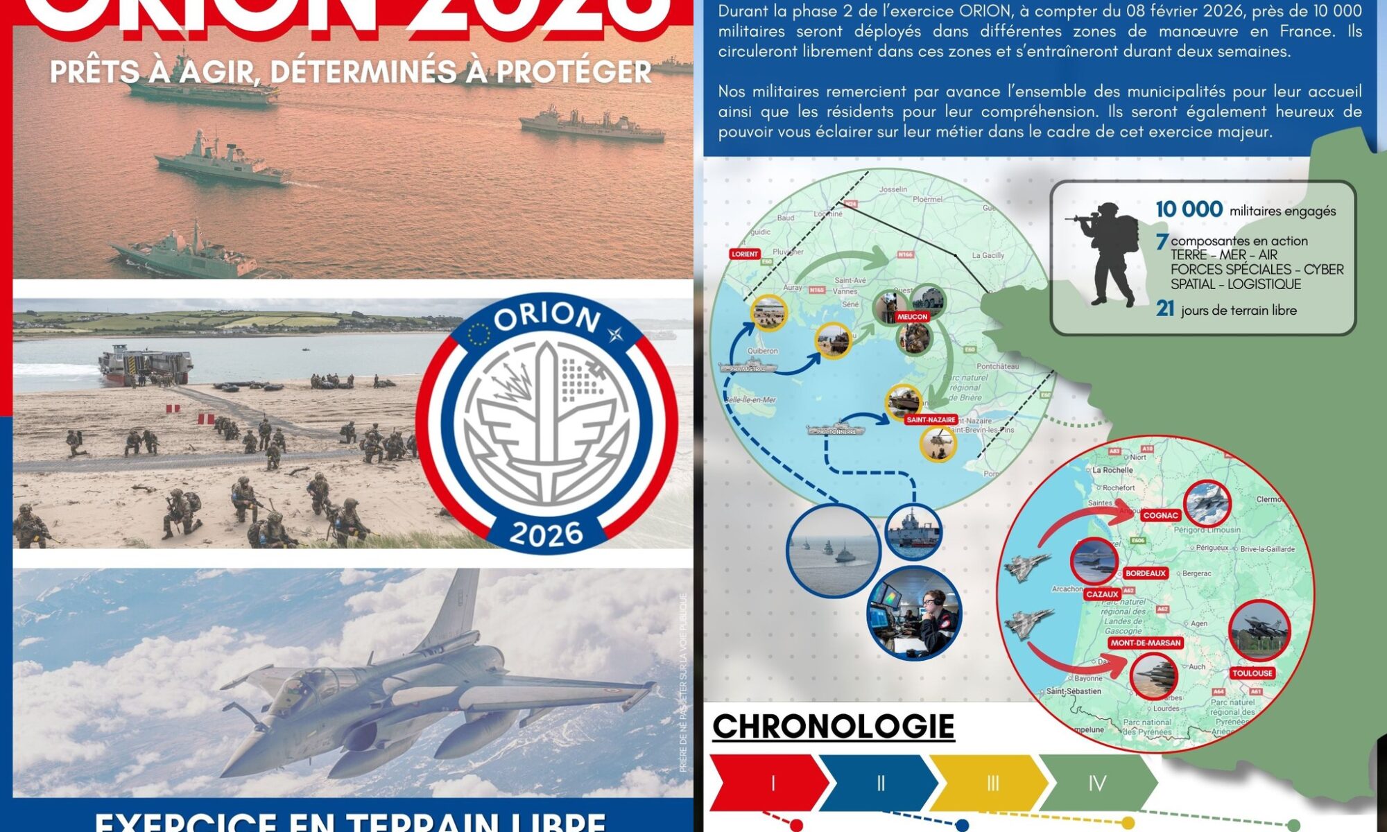 A compter du 8 février 2026, durant la phase 2 de l’exercice interarmées et interalliés ORION 26, près de 10 000 militaires seront déployés dans différentes zones de manœuvre en France et notamment dans le Morbihan. Ils circuleront librement dans ces zones et s’entraîneront durant deux semaines.