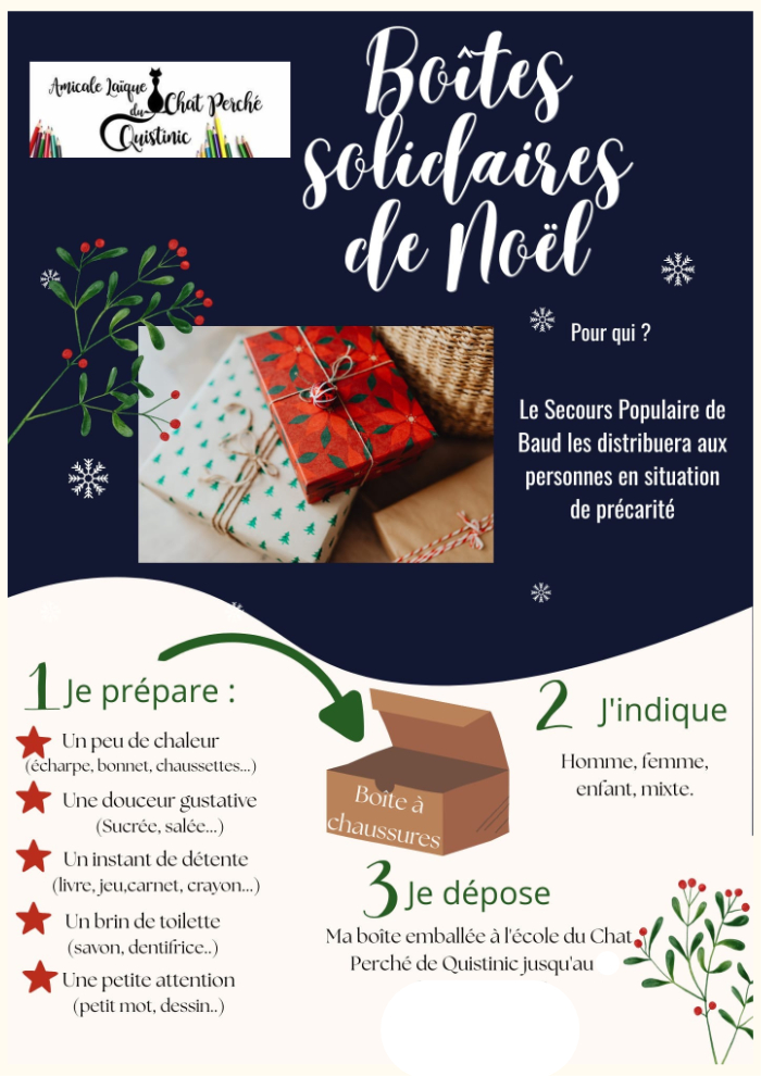Vos boîtes seront distribuées par le secours populaire de Baud.